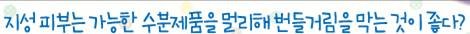 A5. (X)지성 피부 타입이면 영양크림은 물론유분기 있는 크림이나 에센스 등은 번들거려서 엄두도 못내고,여름이면 뾰루지에 트러블까지? 윽 ㅠ하지만 수분은 피부 건강에 필수!!영양 크림 단계는 스킵하더라도, 수분크림은 꼭꼭꼭 챙겨 주세요!지성피부를 위한 수분크림도 많이 출시되었으니자신에게 맞는 제품을 선택하여 수분을 지켜주세요!