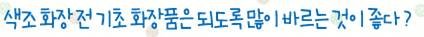 A9. (X)색조 화장 전 단계에서 기초 케어 제품은 적당히 바르는 것이 좋아요!피부에 좋다고 무작정 많이 바르면색조 화장 후 메이크업이 밀려 얼룩덜룩해질 수 있으니 주의!!