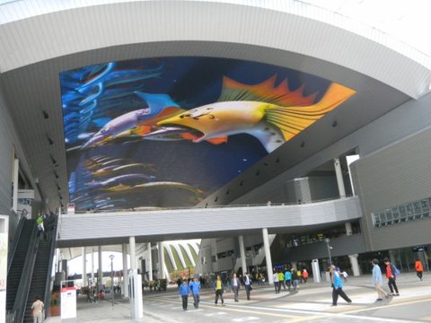 천정에 보이는 대형 LED 스크린은 길이 218m, 폭30m에 654화소라고 하더군요!!