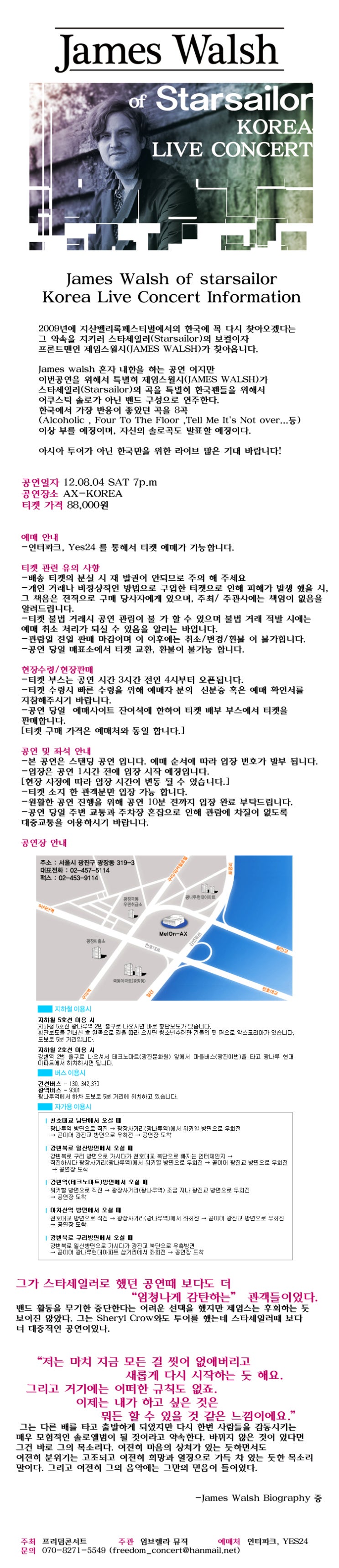 스타세일러의 제임스월시를 사랑하고 또 음악과 공연을 사랑하시는 여러분
