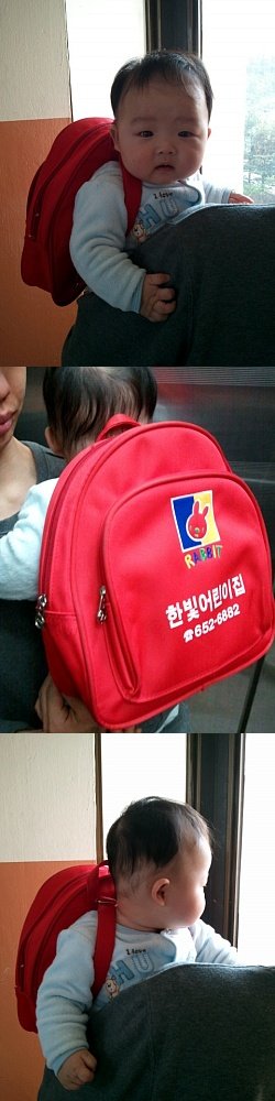 가방매고 어린이집 간답니다! 제가일하는관계로.. 어린 아이를 맡기니..너무 마음이 아프네요..ㅠㅠ
