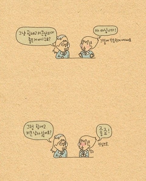 여자라면 다들 힘세고 키큰 남자 좋죠~! 하지만!!!! 제가 여기서 말하고자 하는건