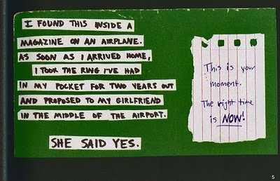 전 이 쪽지를 한 기내잡지에서 발견했어요. 집에 도착하자마자 저는 2년동안 주머니에