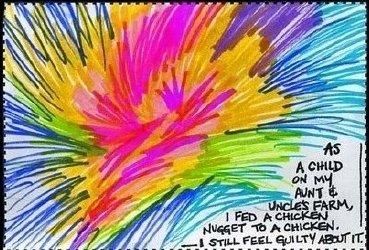 내가 어릴적 삼촌네 농장에서 닭에게 닭고기을 먹였어요.