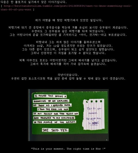 [ http://brittanibotulism.tumblr.com/post/2413695834/want-to-know-something-cool-that-90-of-you-wont ] 블로그의 일기