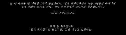 비록 아무것도 모르는 어린이였지만 그에게 메세지를 남기고 싶었습니다.
