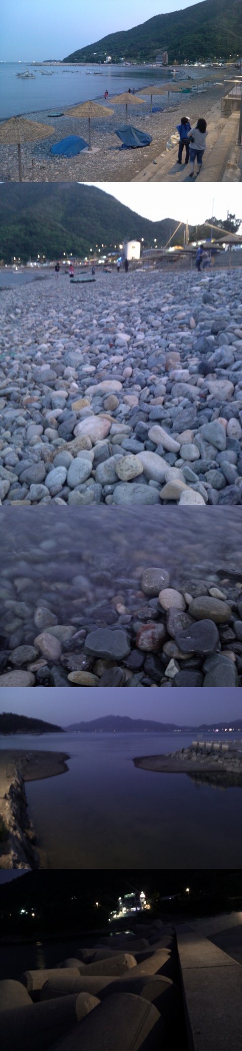 해변 따라서는 횟집이 쭉 있고요 해변이라고 하기에는 돌밭이에요....