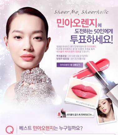 투표자 중에서 50명을 추첨하여 헤라 쉬어홀릭 베리오렌지 립스틱을 준다고 해요!