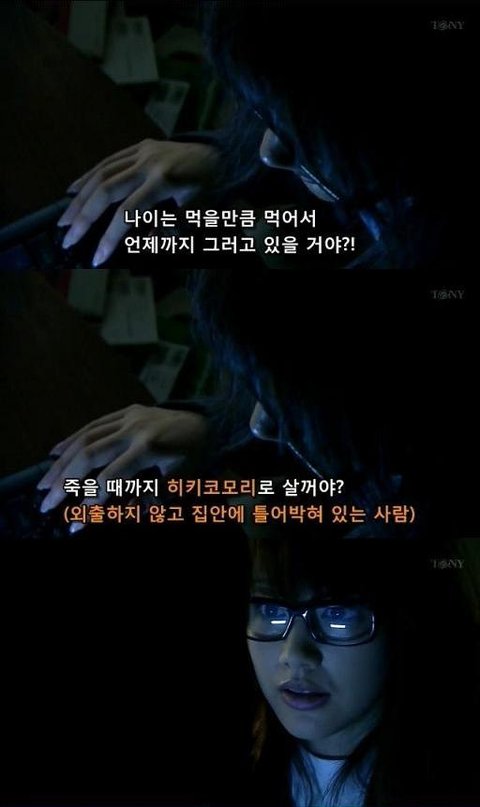 오늘의 여주는 은둔형외톨이(히키코모리)임. 방에 틀여 박혀서 오직 컴퓨터로만 외부와 소통을 하는 오늘의 여주.