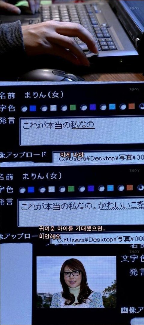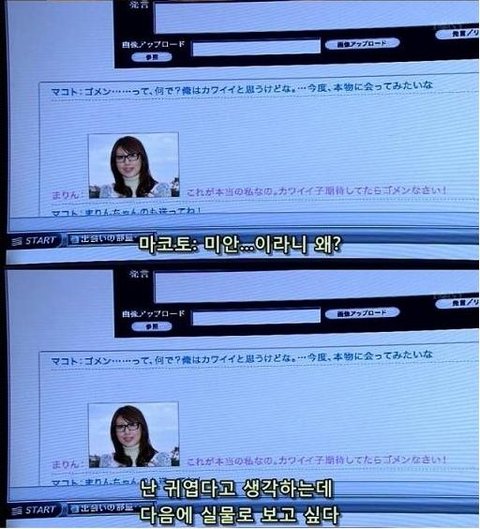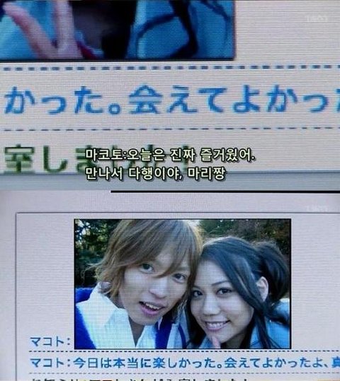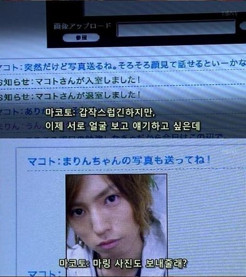 여주의 동생이 보고 있는데, 마코토란 남자는 얼굴을 보며 얘기하고 싶다며 사진을 보내주면서 여주의 사진도 보내달라함.