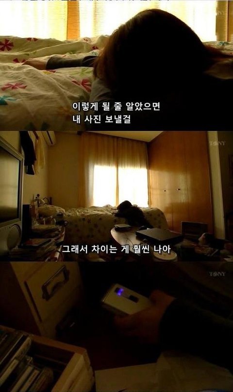 거기에 더 우울해져서 차라리 여주 자신의 사진을보내고 차이는게 나았다고 하면서 자책하는 여주.