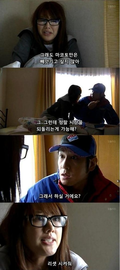 리셋을 안하면 그남자에게 자신이당하고, 리셋을 하면 자신의 동생이 당하는 상황에서 고민하는 여주.