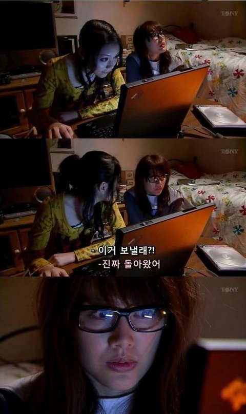 결국 동생의 사진을 업로드 시키는 여주.