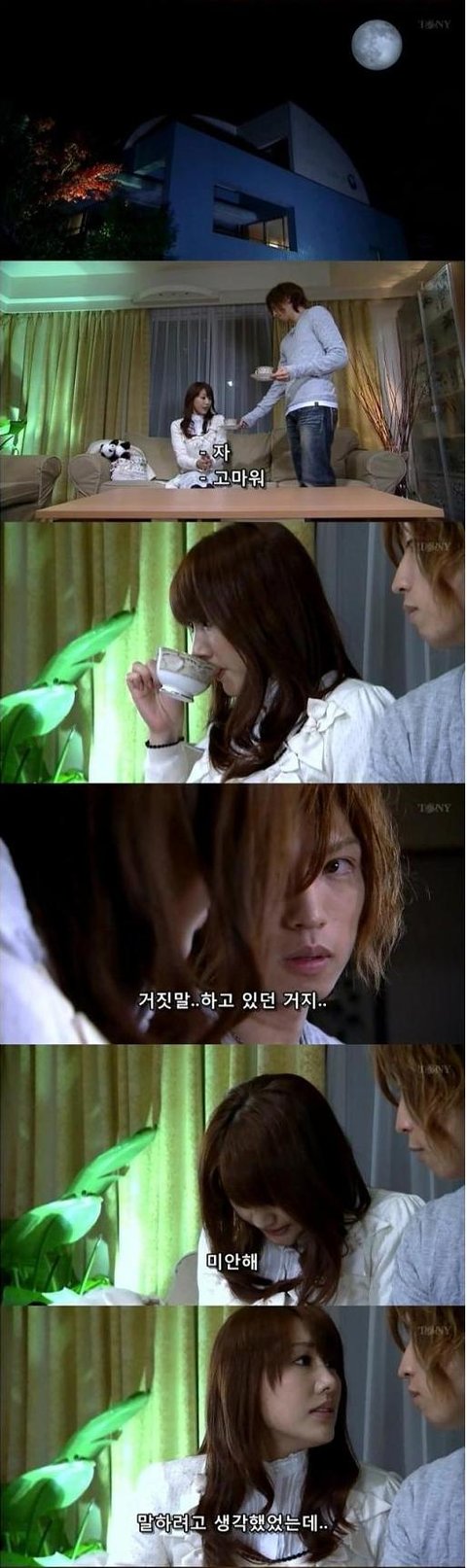 남자의 집에 도착한 여주. 남자가 건네준 차를 마시며, 아까 미안했다고 말함..