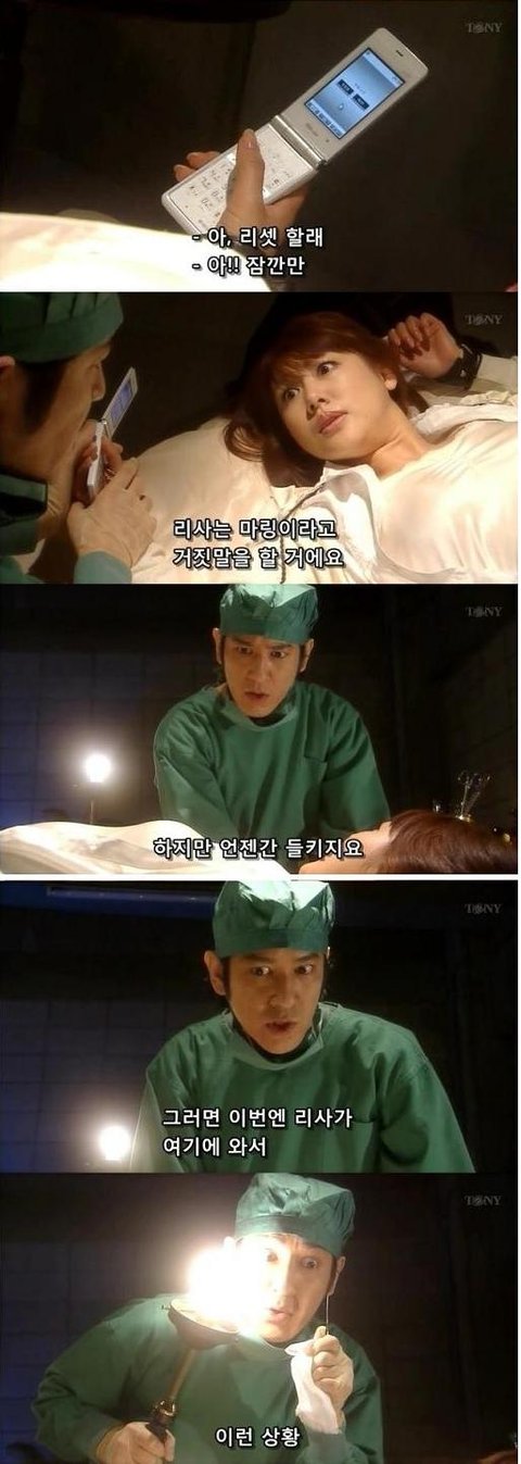 절개를 한다면서, 메스를 집어드는 그남자. 여주는 싫어! 라고 소리침.