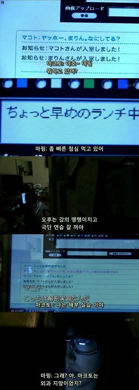 여주는 채팅으로 외로움을 달래는듯 하는데, 여주의 닉네임은 마링. 마코토란 남자와 채팅을 하고있음. 외과지망생이라는 마코토.