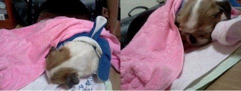 3월 17일. 아직 추운 날씨라 저렇게 큰 수건으로 이불을 덮어주었어요.