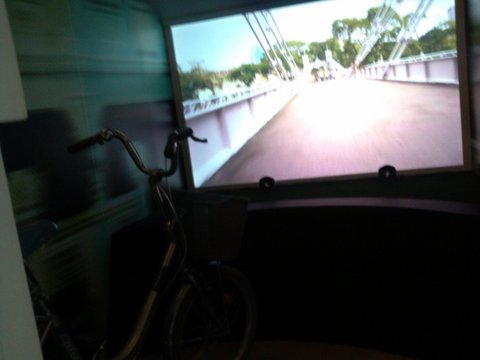 앉아서 자건거 페달 밟으면 화면이 이동함 자전거타고 싱가폴 시내구경한번씩