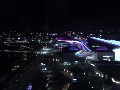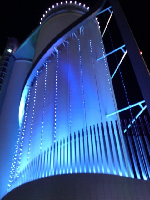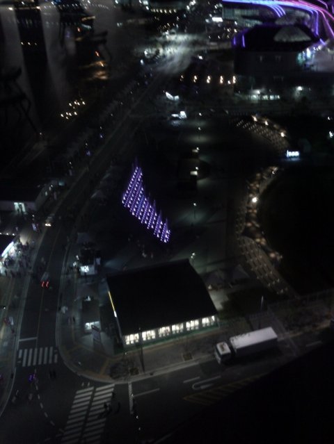 조명켜진 전망대와 포스코 기업관 외벽 스크린임