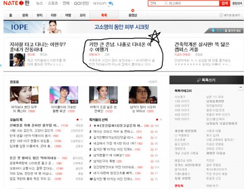 메인에는 있는데 오늘에 톡과 톡커들의 선택에는 없다는??