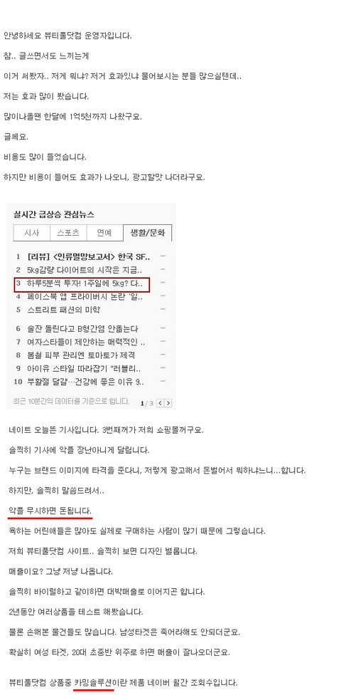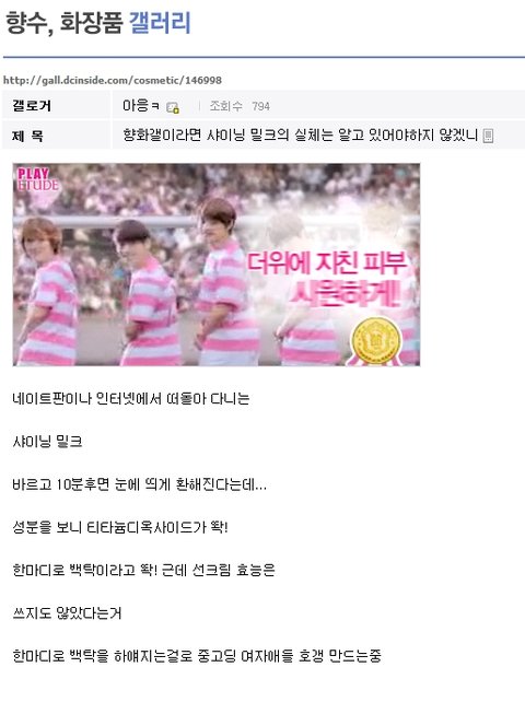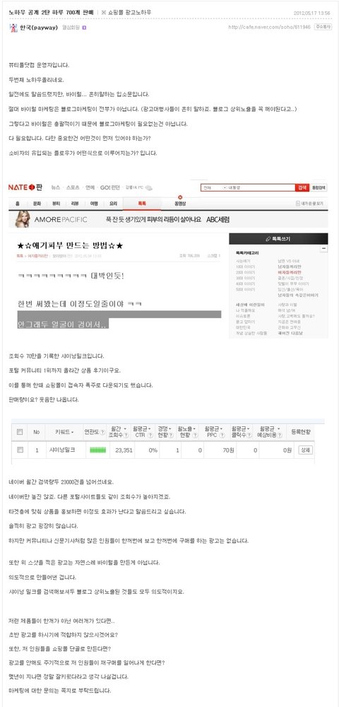 저는 작은 쇼핑몰 운영하는 한 젊은이 입니다. 근데, 네이트판에서 한번도아니고 지금 수십만명의 회원들을 농락하는 이 사람의 정체를 제가 밝혀드리지요. 우선 이사람은 판 내용에 있는대로 샤이X밀크를 포털에 검색하면 맨 위의 광고에 뜨는 뷰티풀XX 업체 사장입니다. 네이트판에서 이짓거리해서 매출이 수직상승했다고 자랑질을 해놨더군요. 이 사람 장사 하루이틀하고 접고싶나봅니다. 네이트판에서 이 짓거리하는거 누가 할줄몰라서 안합니까? 할 도리가 아니기때문에 안하는겁니다 ...^^ 그리고 마케팅 언급 함부로 하지마십시요 ^^ 마케팅을 업으로 하시는 분들이 보시면 좋아라하겠습니다