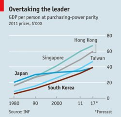 시장의 실세 환율로 계산하면 일본의 1인당 GDP는 지금도 싱가포르를 제외한 다른 NIEs