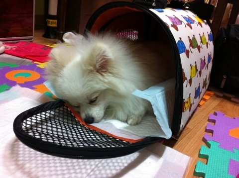 원래는 도착하자마자 가방에서 나오는데
