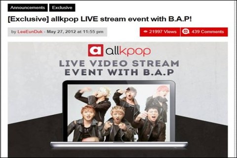 올케이팝은 B.A.P의 북미에서의 인기를 감안했을 때 가장 많은 사용자들이 접속할 수 있는 현지의 밤 시간대를 택했으며 최고 약 10만 명의 동시 접속자가 생길 것을 대비해 서버를 증강하고 있다고 밝혔다.