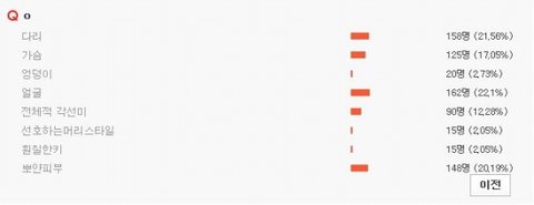 1위 얼굴 / 2위 다리 / 3위 뽀얀피부