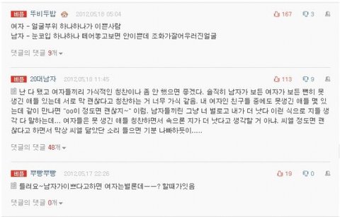 글이나 요런거는 링크달아놨어요 찬성보다 반대가 많은것도 있고 개인의 이상형을 적은 글일수도 있고