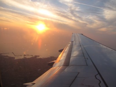 청주공항에서 저녁비행기를 타고 출발햇던 우리들은 노을을 바라보며