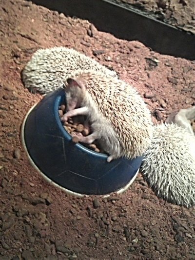 - 고슴도치 : 새벽에 온도 및 상태 확인하다 찍은사진... 이아이도 밥그릇이 보물 1호인가 보다 .. -