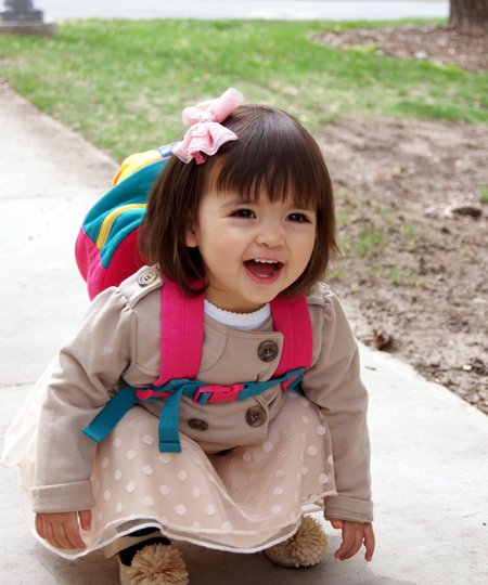 한살때 선물로 받은 뽀로로 가방을 메고 머리핀을 끼고