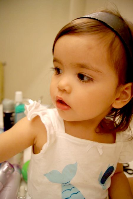 엄마 머리띠를 만지작 거리길래