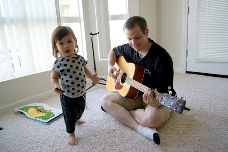 하은이는 기타에 맞춰 노래부르는 중