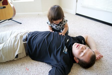 잠자는 척 하는 아빠에게 가서