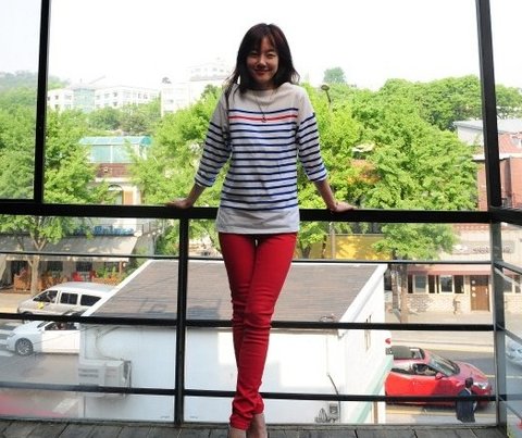 정말 깨끗한 피부와 동안 얼굴, 그리고 스트라이프 티셔츠로 화사해 보이죠^^