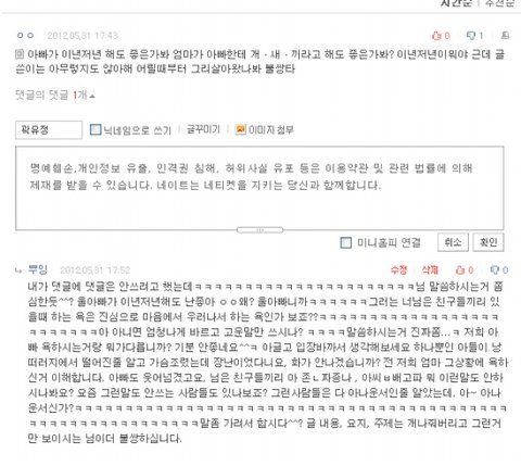 제발 댓글도 생각좀 하고 답시다. 기분 상당히 안좋네요.