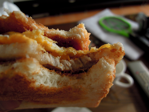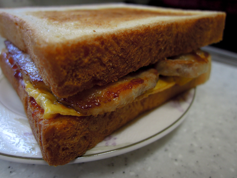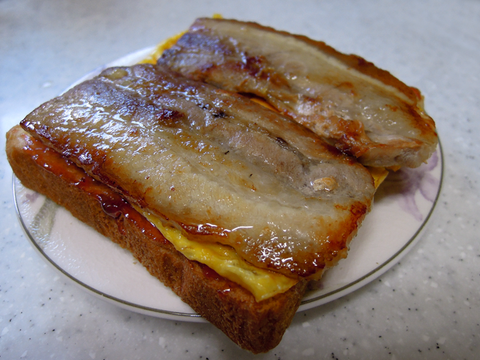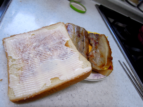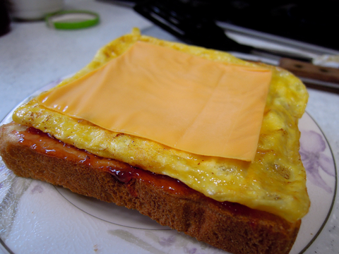 빵+고기+잼은 쉽게말하면 토스트에 베이컨이 두꺼웟졋다고 생각하시면 될것같습니다 ㅎㅎ먹을만한데..주의사항은 잼은 얇게 바르세요 많이바르면 정말...별로입니다 참고로 치즈는빼고드시는게 더맛있습니다