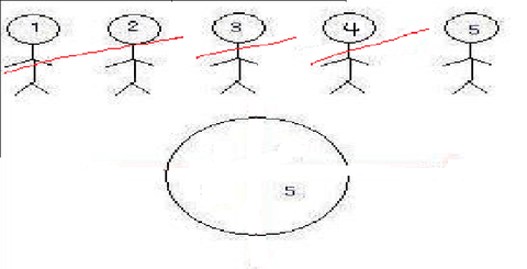 케익을 3번칼질해서 5명이 나눠먹는방법