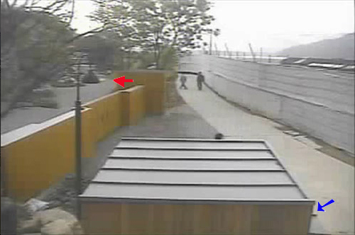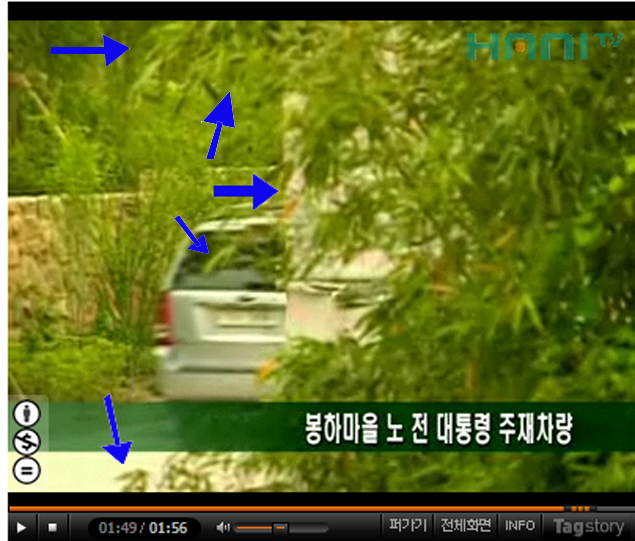 적어도, 아래 화살표시 부분의 나뭇잎은 CCTV에 나와야 하는거 아닙니까요?