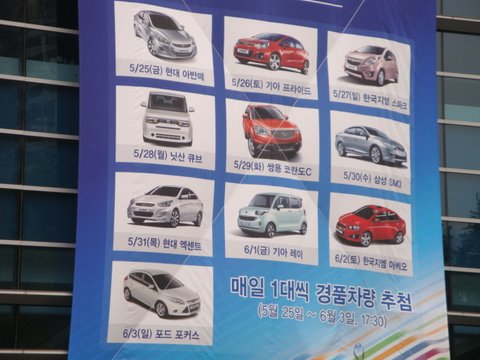 이번 부산모터쇼는 부산 BEXCO에서 진행 중입니다. 모터쇼 홍보 뿐만 아니라 경품차량 플래카드 등 여러 플래카드들이 붙어 있네요~어! 저기 경품 목록에 Ford Focus도 보이네요!!ㅎㅎ