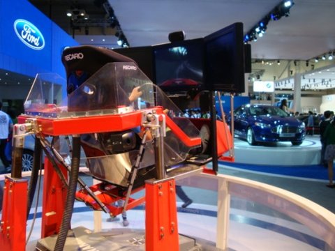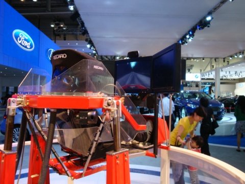 이번 모터쇼에서는 포드 전시관이 타관에 비해 이벤트가 많은 것 같습니다. 남자분들이라면 누구나 다 해보고 싶어하는, 실제로 운전하는 듯한 기분을 느낄 수 있는 시뮬레이션 게임도 참여하실 수 있습니다. 생동감 있게 움직이는 시뮬레이터를 보니 정말 운전하는 듯한 느낌을 받을 수 있겠다는 생각이 들더군요.
