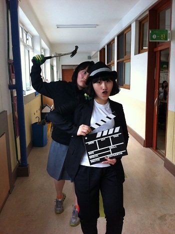 우리 학교 만화동아리 회원인데, 아이들의 환호성을 자아냄 ![]()
