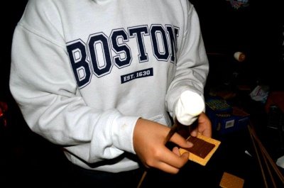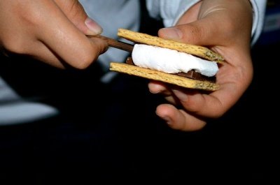 마시멜로도 얹고, 다른 크래커를 얹고 누른 상태에서 꼬챙이만 쏙 빼내면 스모어 완성!!!!!!