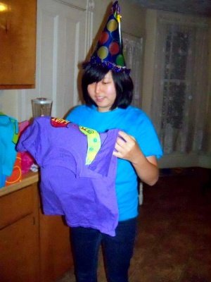 선물 뜯는 중!! 저 입고 있는 티셔츠는, T가 만들어 준 티셔츠에요. 들고 있는거 말고 입고 있는거요ㅋㅋ(T야.. 이래서 내가 널 사랑한다ㅠㅠ)