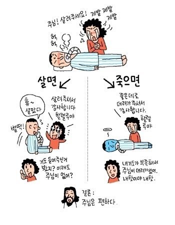 근본적으로생각해보자. 백번 양보해서 하나님이 있다고 치자. 그렇다면 하나님이란 작자는 얼마나 악덕한 위선자인가? 어느 부모가 자기 자식을 지옥불에 떨어뜨린단 말인가? 자기 자식이 상상 가능한 최악의 나쁜짓을 한다고 해도 지옥 불에 떨어뜨릴 부모는없다. 하물며 '아가페적인','무조건적인' 사랑을 베푸시는 하나님께서 자기가 만든 창조물을 지옥불에 쳐넣는다고? 이 얼마나 어처구니 없는 설정인가? 도대체 하나님이란 작자는 왜,무엇을위해서 자신의 피조물들을 지구라는 행성에서 몇십년간 살게 한 뒤 그동안 자신을 믿었느냐 안믿었느냐에 따라 천국과 지옥에 나누어 쳐넣는가? 이러한 심판을 영원한 세월동안 무한정 반복하는 이유가 무엇인가? 하나님은 이러한 심판을 통해 무엇을 얻고자 하는가? 지옥불에 자식을 떨어뜨림으로써 희열을 느끼는 것인가, 아니면 자신이 만든 피조물이 자신을 얼마나 잘 믿게 만들어졌는가 시험해 보고자함인가? 자유의지? 개같은소리마라.자유의지를 준다는 거 자체가 위선적인 행동아닌가? '내가 자유의지를 부여할테니 어디 한 번 날 믿나 안믿나보자. 믿으면 천국에 보내줄 것이요, 안믿으면 지옥불에 쳐넣을 것이니..' 이런 발상은 정말이지 싸이코패스와 같은 발상이다. 난 전지전능한 하나님이 굳이 피조물을 만든 이유도 납득이가지 않는다. 심심했나? 피조물을 만들어놓고 구경하고 심판하며 심심함을 달래고자 했는가? 내가 하나님이었다면 차라리 지구에서 살게하는 과정을 없애고 모두 천국에 태어나게 하여 행복하게 살게 할 것이다. 지옥이란 걸 만들었다는 거 자체가 불순한 행동인 것이다. 자기가 만들어 놓고 자기를 믿나 안믿나 심판한다? 자길 믿지 않으면 지옥불에 쳐넣는다? 이것이 진정 아가페적인 하나님의 발상인가?
