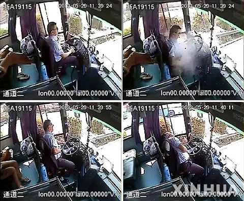 지난달 29일 중국 장쑤성의 한 고속도로를 달리던 버스에 갑자기 멀리서 철조각이 날아왔다. 이 철조각은 그대로 버스 앞 창을 뚫고 들어가 운행중이던 운전기사 우빈씨를 강타했다.
