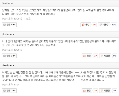 군대비하하는 년들이 우리나라에 많아서 큰일이다