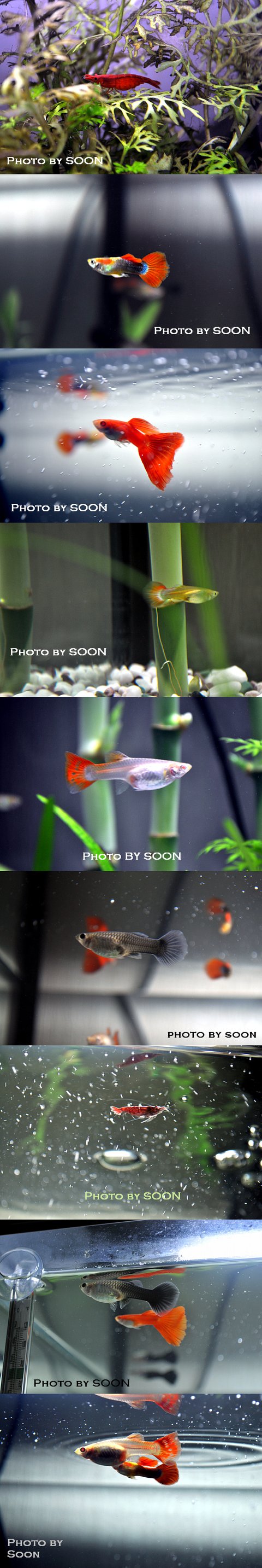 (종류를 설명하자면 사쿠라새우, 네온턱시도구피, 알비노 풀레드구피, 그냥 구피 등등등등등)